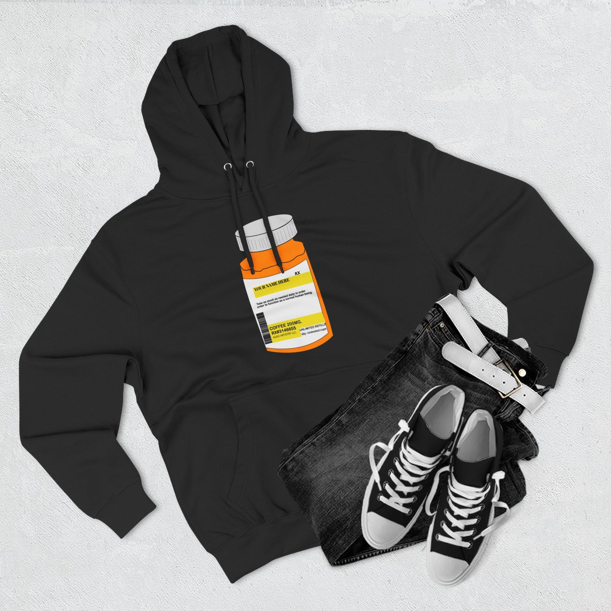 Customizable Prescription Bottle Hoodie - Cozy Medication Inspired Fleece Sweatshirt