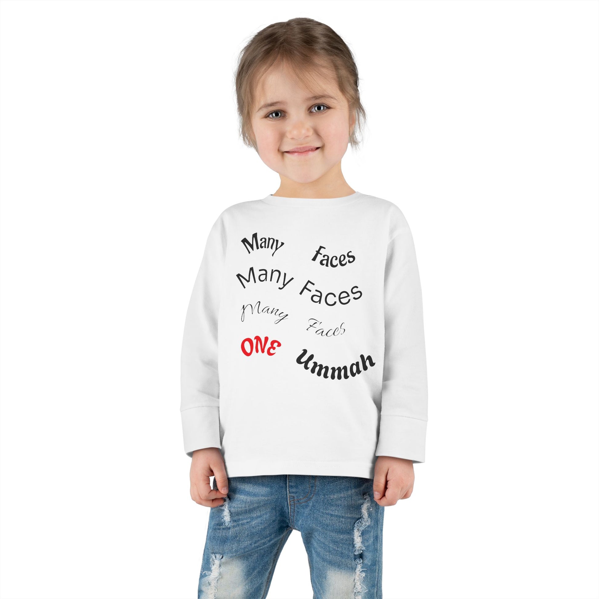 Many Faces One Ummah Toddler Long Sleeve Tee – Joyful Style, Meaningful Message
